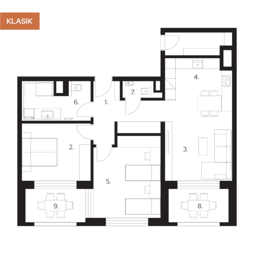 3 izbový byt typu L